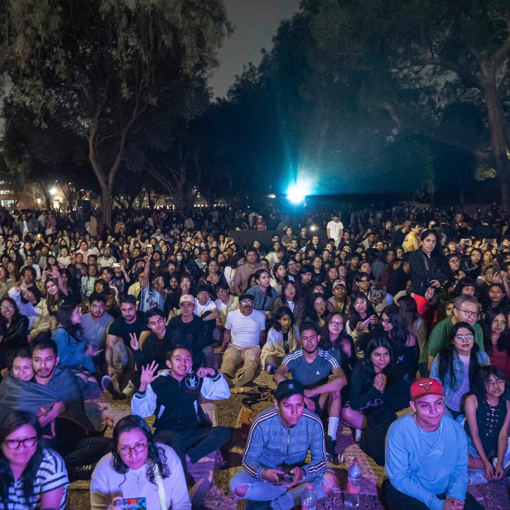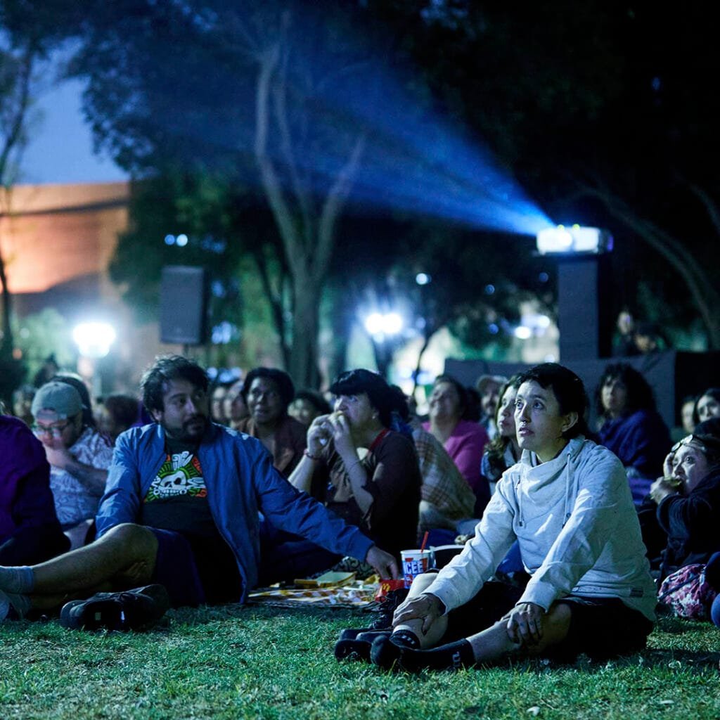 Proyección en el anfiteatro de la Zona Arqueológica de Cuicuilco, dentro de un recorrido por la Ruta de la Amistad. Arte público, territorio y cine en uno de los rincones más subestimados del sur de la ciudad.