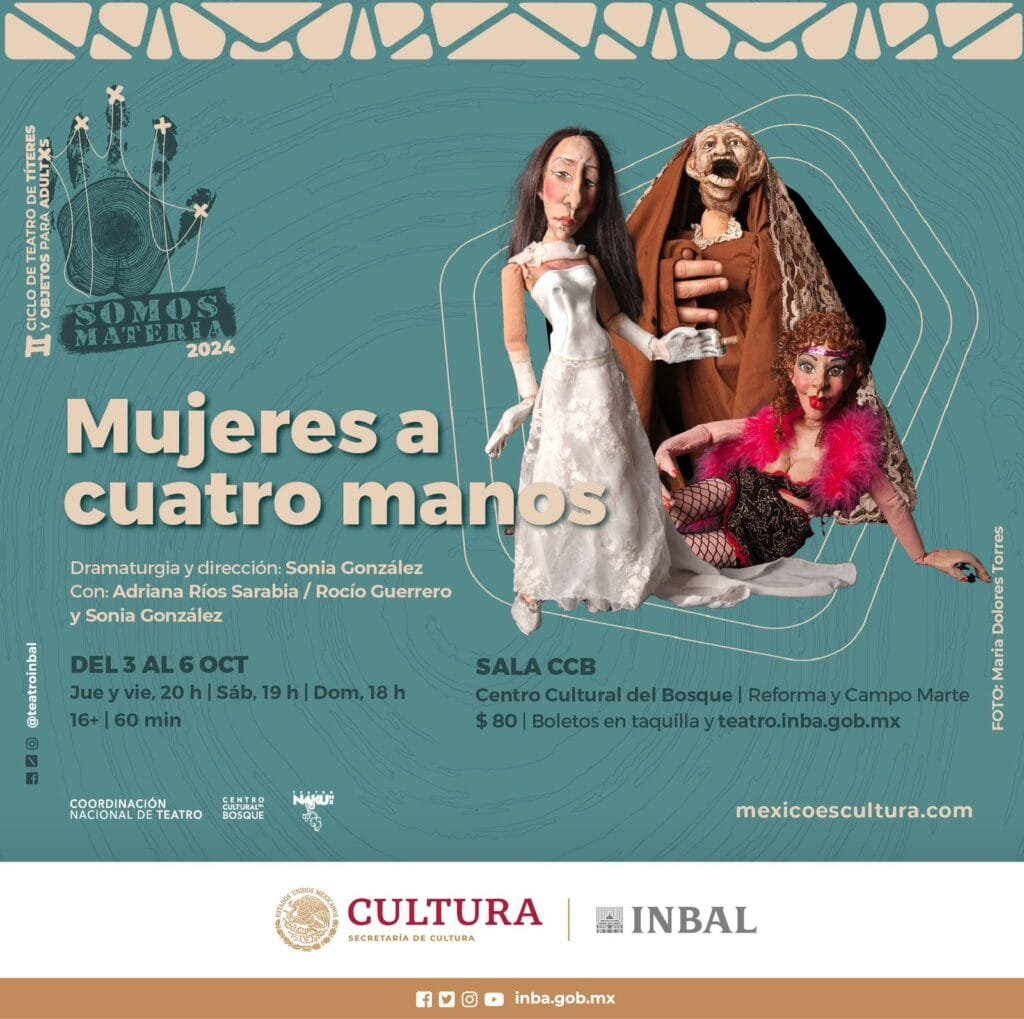 Del 3 al 6 de octubre de 2024, el Teatro Naku MX regresa a la escena con la icónica obra Mujeres a Cuatro Manos, escrita y dirigida por Sonia González. Esta producción celebra su 30 aniversario con una presentación en la Sala CCB del INBAL, en el marco del ciclo Somos Materia, coordinado por la Coordinación Nacional de Teatro. Desde su estreno en 1994, esta obra ha resonado con el público en diversos festivales internacionales, gracias a su capacidad para abordar temas universales a través de la perspectiva femenina.