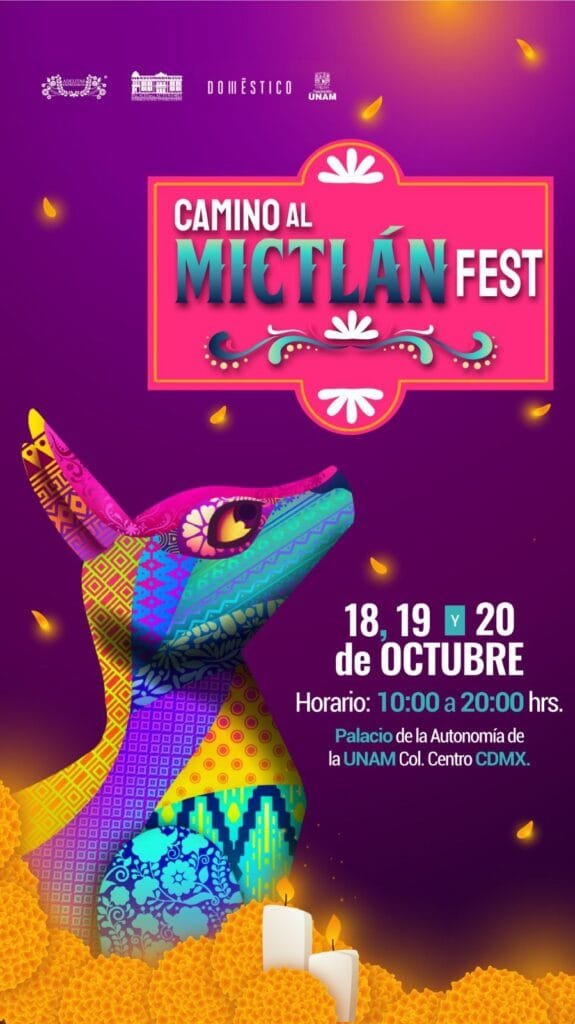 Explora el festival “Camino al Mictlán” del 18 al 20 de octubre en el Palacio de la Autonomía. Cultura, arte y tradición prehispánica.