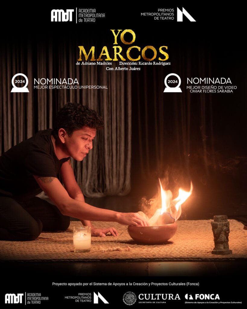 Yo Marcos es una fascinante obra de teatro unipersonal que explora la identidad cultural y espiritual de México. Dirigida por Ricardo Rodríguez y escrita por Adriano Madriles, esta obra ha sido nominada a los Premios Metropolitanos de Teatro 2024 en dos categorías: Mejor espectáculo unipersonal y Mejor diseño de video. El monólogo, interpretado magistralmente por Alberto Juárez, presenta una historia profunda que va desde la conquista hasta los momentos de conflicto interno, todo a través del personaje de Marcos Cipac.