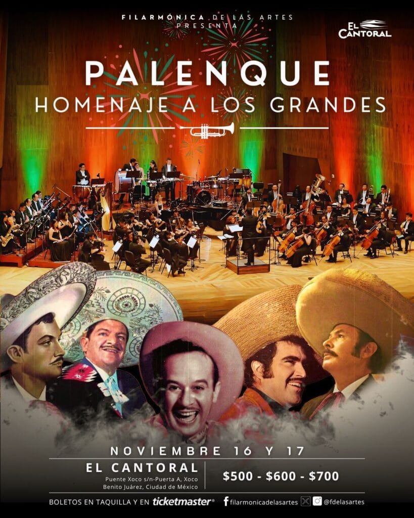 Este concierto de homenaje, titulado “Palenque, Homenaje a los grandes”, ofrecerá dos únicas funciones los días 16 y 17 de noviembre de 2024, en el Auditorio El Cantoral, ubicado en México City, donde los asistentes podrán disfrutar de un espectáculo que fusiona la música ranchera con el poder de la orquesta sinfónica. Las entradas tienen un costo de $400 a $600 y se pueden adquirir a través de Ticketmaster o en las taquillas del lugar.